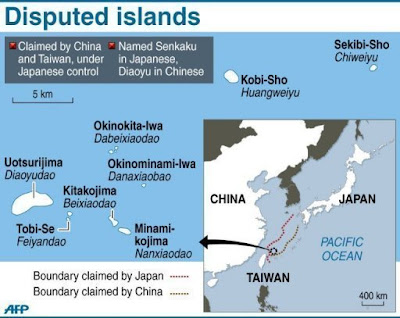 Nukes rule out any immediate China v Japan war because Japan falls under the Pacific hegemony of the US nuclear umbrella. We're still a decade away from the time when the real noose tightens on the world economy (unsustainably high oil prices) and both China and Japan are majorly dependent on seaborne delivery of spice for right now. This makes them nervous. Without an Iraq in your back yard, you tend to seek out every oil deposit you can. Supposedly, the Diaoyu/Senkaku islands have offshore oil and gas deposits and that's when you know things are approaching a crisis point.